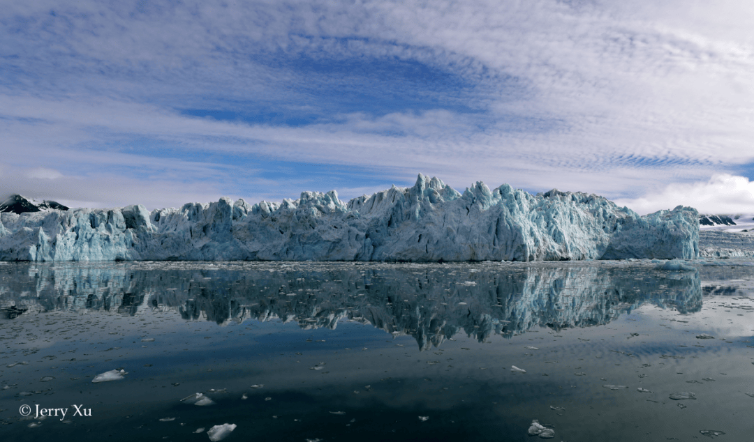 在斯瓦尔巴群岛可以看到壮观的冰川, 宽度达到数公里, 气势磅礴 。每天都会有大块冰块从冰川前沿断裂坍塌, 发出巨大的轰鸣声, 震慑人心。