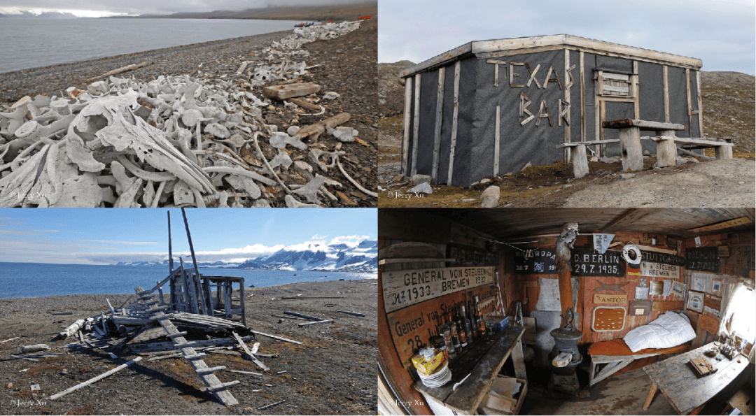 斯瓦尔巴群岛除了自然风光和野生动物外, 还拥有精彩丰富的人文历史景观, 包括众多上百年前来此探险的极地先驱故事和历史遗址, 也有近代狩猎人留下的小木屋和里面的生活物资, 还可以在若干海滩看到捕鲸年代留下的大量鲸类残骸, 在航程期间会安排来到这些点登陆探索。