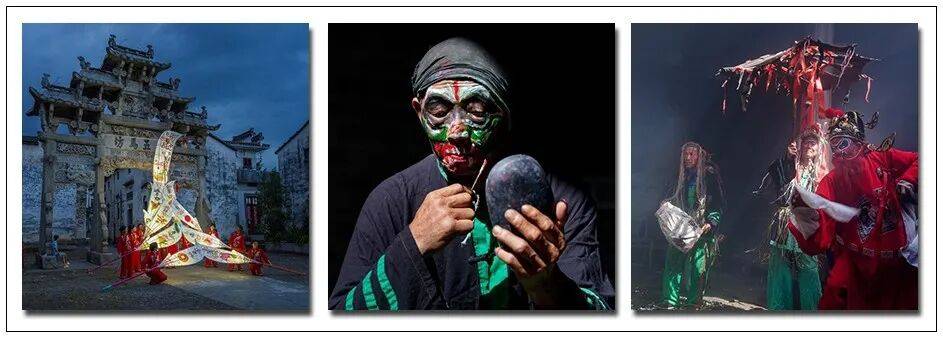 早餐后安排跳钟馗的场景进行创作,这是非常难得的人文摄影题材,我们会对现场和拍摄对象进行一定的干预,以获得最佳的创作效果。“南派跳钟馗”,以古徽州歙县地区最为突出,又称“嬉钟馗”,盛行于明万历年间,距今已有400多年的历史。歙县跳钟馗多在端午节演出,寓意消除五毒,四季平安,以求驱邪降福,保佑村民平安。徽州,古称歙州,又名新安,有“无徽不成镇”之说,其中徽文化是中外学者重点研究的中华三大地域文化之一。