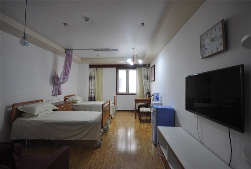 设施特色:2000多平方米绿地;标准间内设卫生间(配电热水器、残疾人专用扶手)、加大单人床、衣柜、书桌、沙发、电视;老人餐厅、棋牌室、书画室、健身房多功能活动中心。