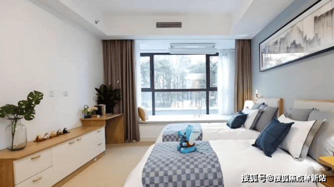 社区规划单人间(35-45㎡)、双人间(50-60㎡)及家庭套房(60-80㎡)三种户型,85%以上房间朝南设计,配备独立卫浴、智能护理床、毫米波雷达跌倒预警系统及可语音控制的智能家居。适老化细节无处不在:防滑系数R12级的PVC地板、双侧扶手走廊(距地0.7米与0.9米双层设计)、恒温花洒与折叠助浴椅,确保轮椅通行覆盖率达100%。认知症专区采用“家庭式”套房设计,配置老式收音机、织布机等怀旧物件,通过“时光走廊”场景复原激发长者记忆。