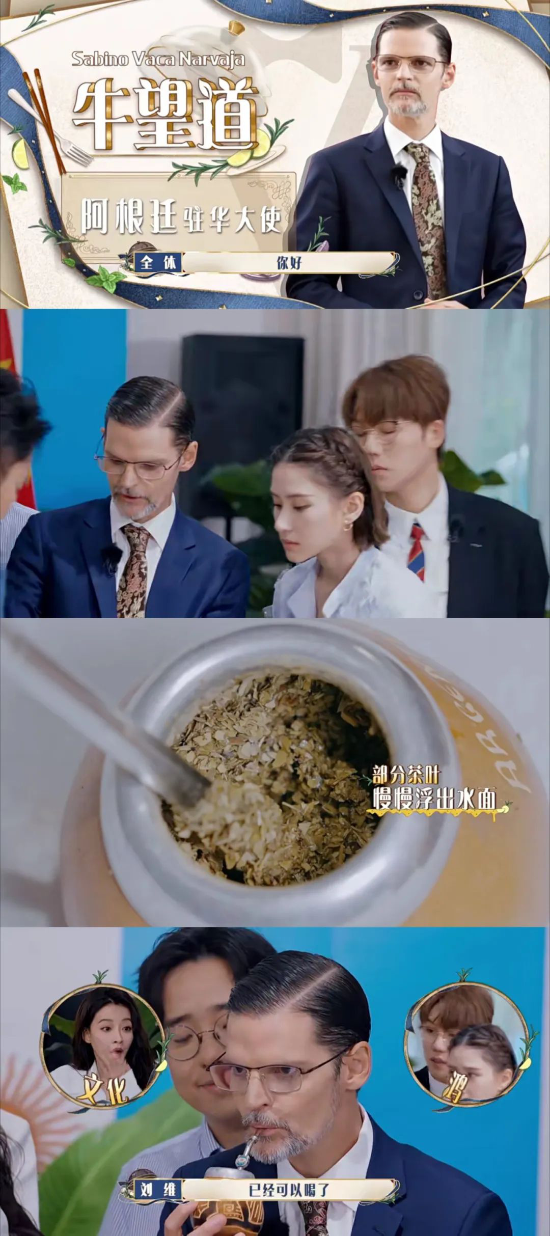 以“大使的厨房”为主题,节目却不拘泥于美食,而是去探索、去发现大使馆内丰富的文化印记,展开国际文化交流。“探戈起源于哪里?”“哪个乐器被称为探戈的灵魂?”嘉宾们上一秒还沉浸在阿根廷传统慢节奏探戈的舞步中,下一秒就进入抢答环节,而这些趣味问答,不经意间就让嘉宾和观众get到了探戈的知识点。阿根廷驻华大使牛望道(Sabino Vaca Narvaja)亲自展示“马黛茶”的冲泡方法,从各种茶叶、多款茶壶到内置弹簧的吸管,嘉宾和观众深入了解了这一独特的阿根廷国宝。
